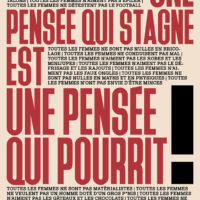 A travers la mise en tension d’un ensemble de slogans, issus du corpus de mai 68 et d’autres que l’artiste a élaborés ou détournés, Mounia Youssef propose et dessine les contours d’un manifeste. De celles qui ont fait l’histoire, à l’écriture inclusive, en passant par la nécessité de se réapproprier son corps et ses identités ; l’artiste met en lumière un panorama des luttes à mener.