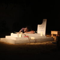 « Trois jeunes femmes, âgées de vingt à trente ans, se retrouvent encore une fois dans un cimetière pour une sorte de rituel autour de la tombe de leur mari commun qu'elles prétendent, tour à tour, avoir tué. Elles fument, boivent, jouent de la musique, chantent et dansent pour l'empêcher de reposer en paix... Se venger encore et toujours d’une vie violente pour tenter de s’émanciper. Pourtant, malgré tout ce qu'elles ont enduré, elles marquent des temps d'hésitation car, au fond d'elles-mêmes, elles continuent à éprouver un attachement inexplicable pour cet homme qui leur a tout pris, y compris leur enfance. De révélation en révélation, leur cohésion va se trouver mise à mal. Car si elles partagent le même désir de se venger de la vie violente qu'elles ont connue, leurs projets d'émancipation ne passent pas forcément par les mêmes chemins... Mais cette nuit-là, elles sont déterminées à le sortir de son trou. Hantées par des souvenirs d’une vie conjugale avec un « pseudo mari » qu’elles prétendent avoir tué, réussiront-elles à se libérer du poids de leur passé pour enfin donner un sens à leur vie ? »